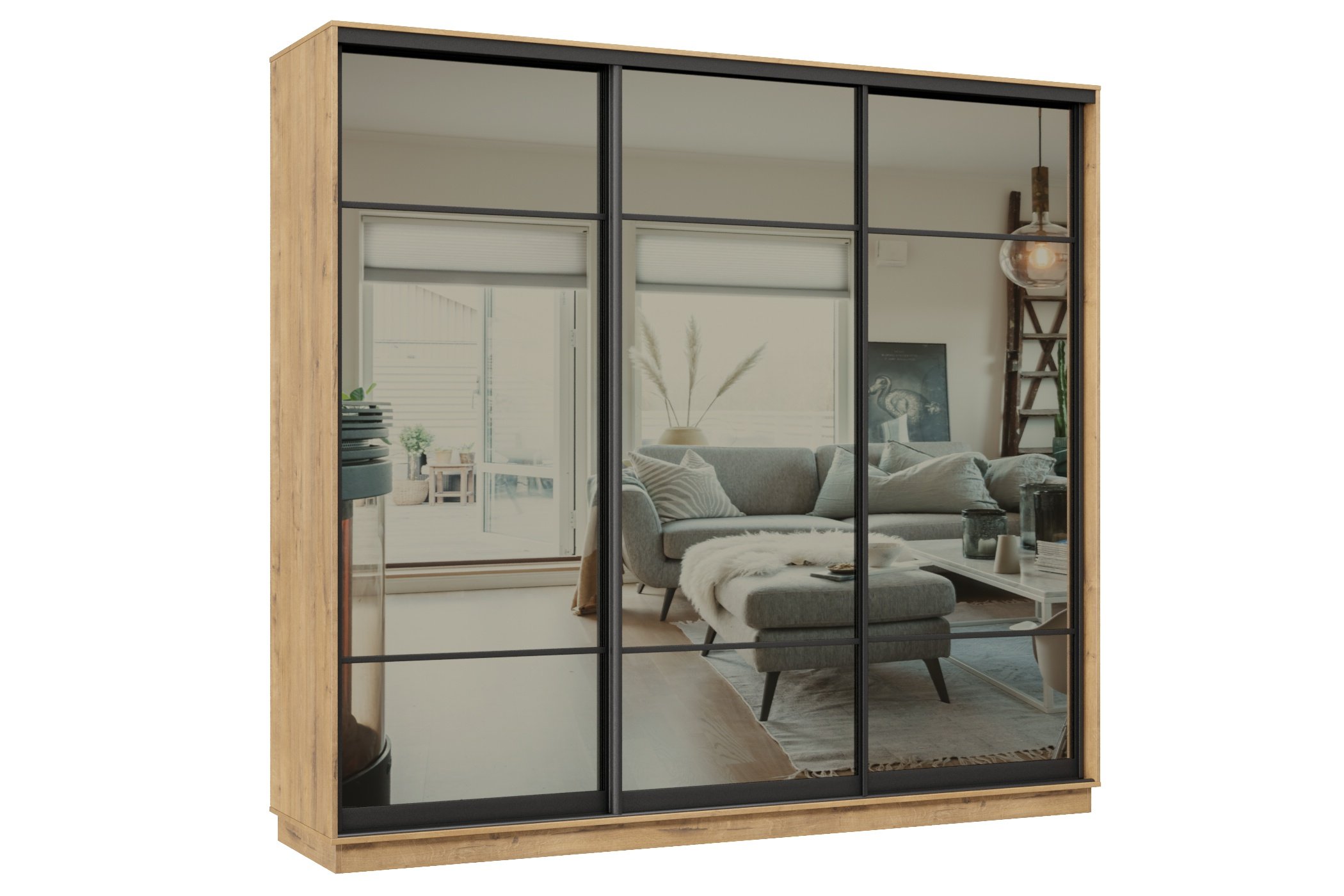 Отзывы о Столплит Шкаф-купе Премьер 58 (11ЗГ;11ЗГ;11ЗГ) фасады зеркало графит/трёхдверный/Профиль чёрный муар Бунратти