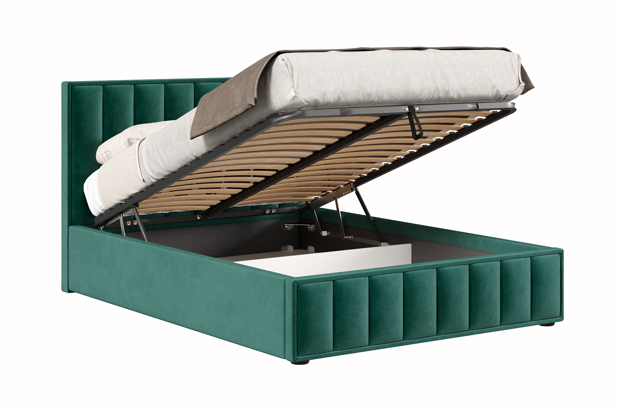 Кровать Анкона 1400 с подъёмным механизмом, велюр (Зеленый)