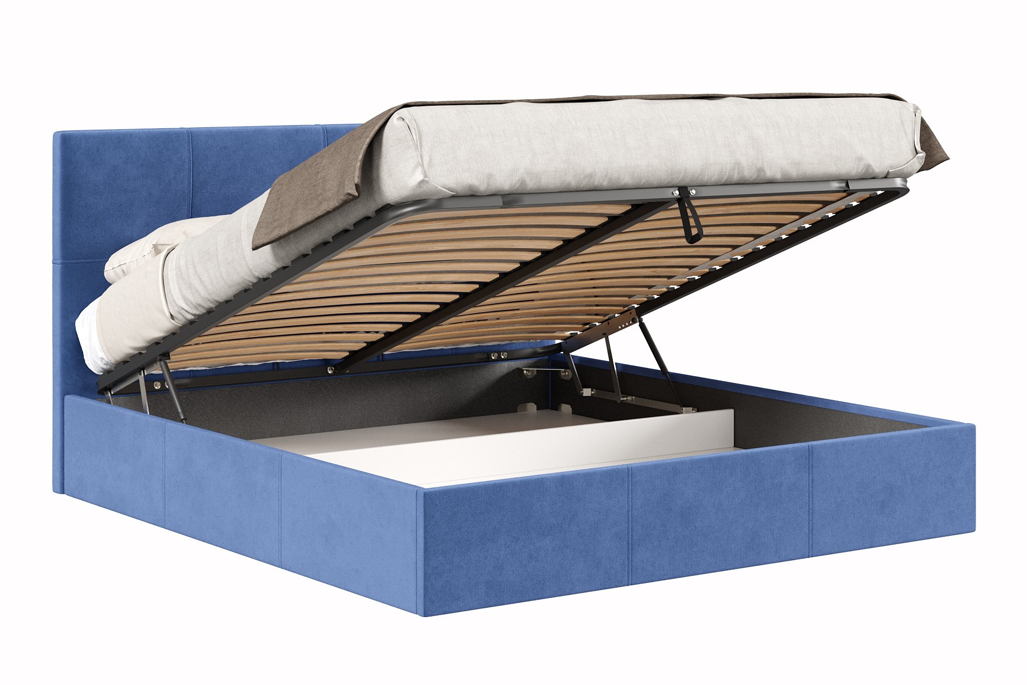 Кровать Марсель 1800 с подъёмным механизмом, велюр (Синий)