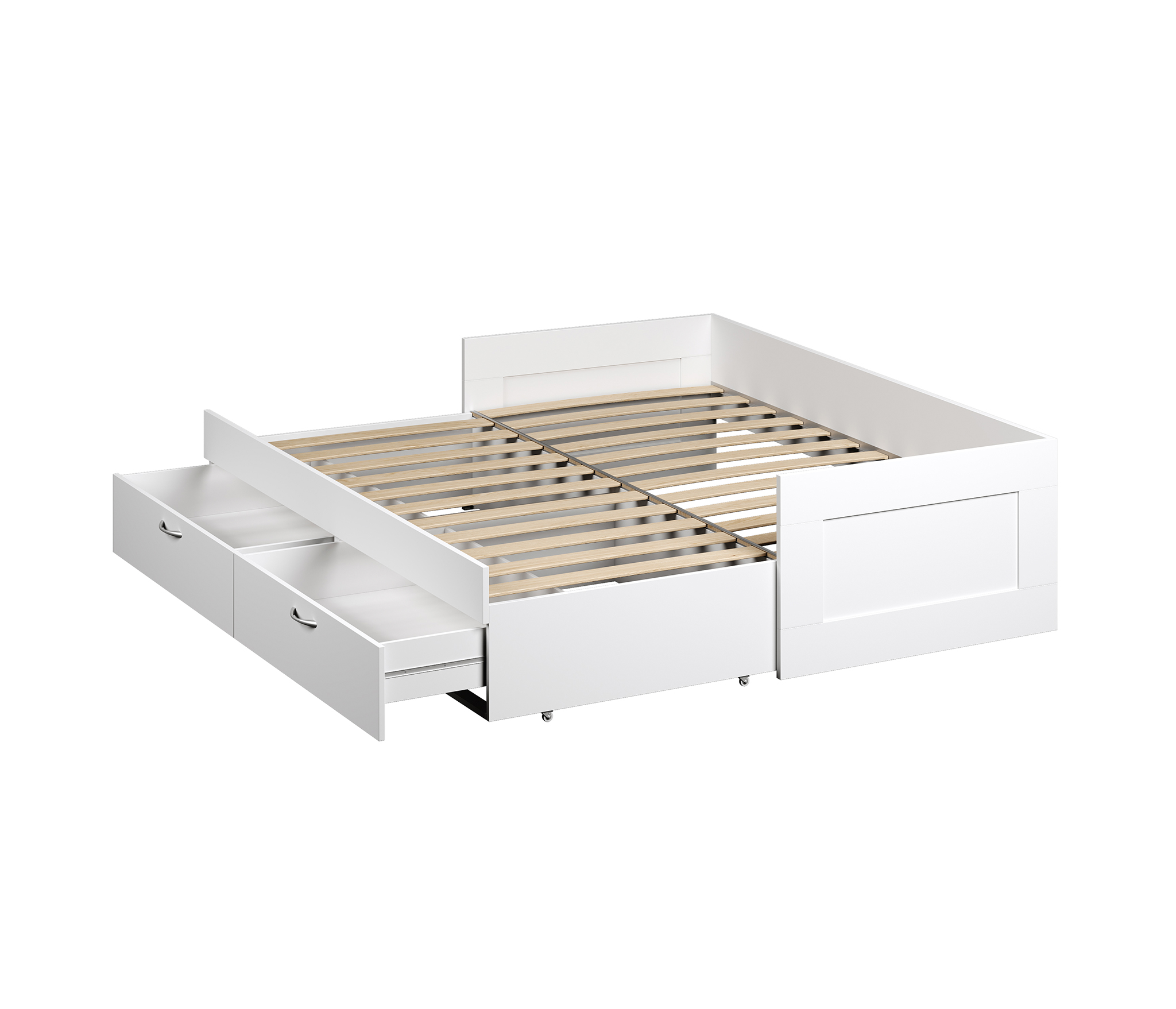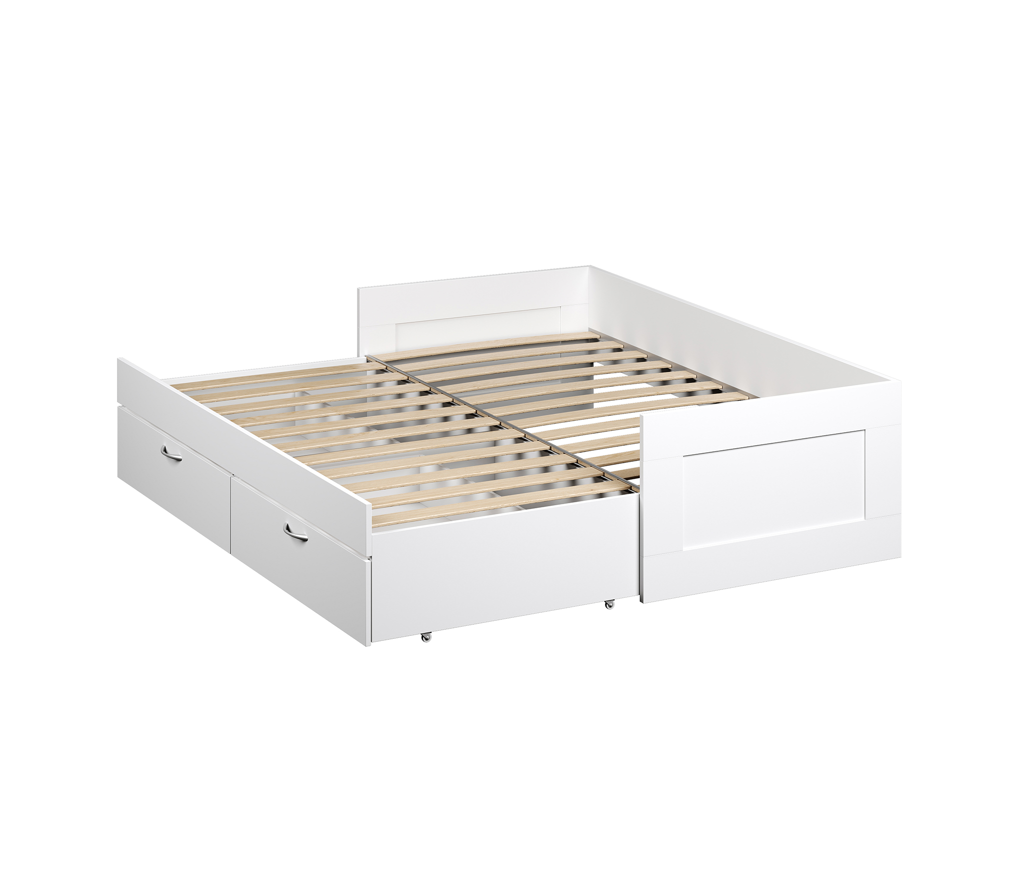 Кровать СИРИУС двухспальная раздвижная с двумя выдвижными ящиками для хранения, с ортопедическим основанием Лурой, 2044х960х575. Спальное место 90/180х200. Изготовлена из кашированного ДСП толщиной 22 мм. Гарантийный срок для жилых помещений 18 месяцев, для общественных помещений - 12 месяцев.