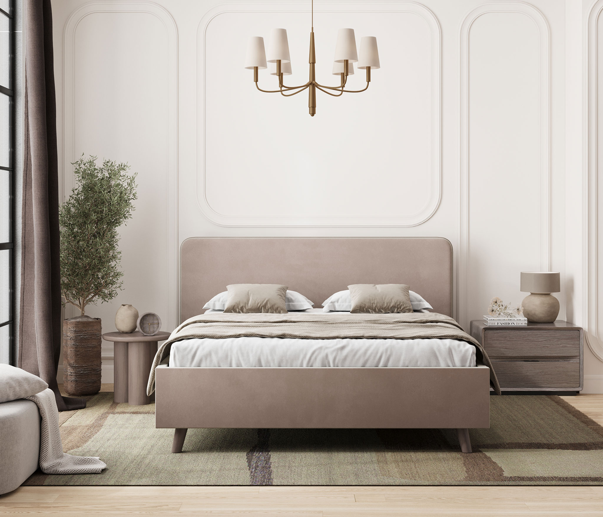Кровать Ванесса (140 х 200), Велюр (Бежевый)