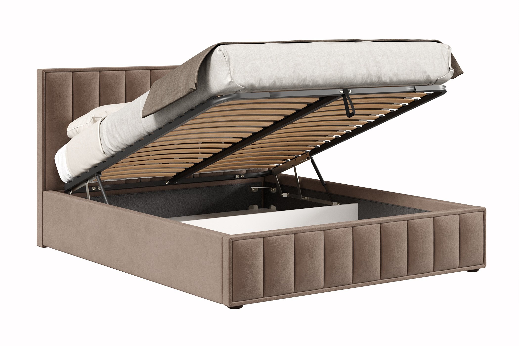 Кровать имеет нишу для хранения разных вещей, это очень удобно, если пространство в комнате не дает возможность поставить дополнительные шкафчики, либо полки.