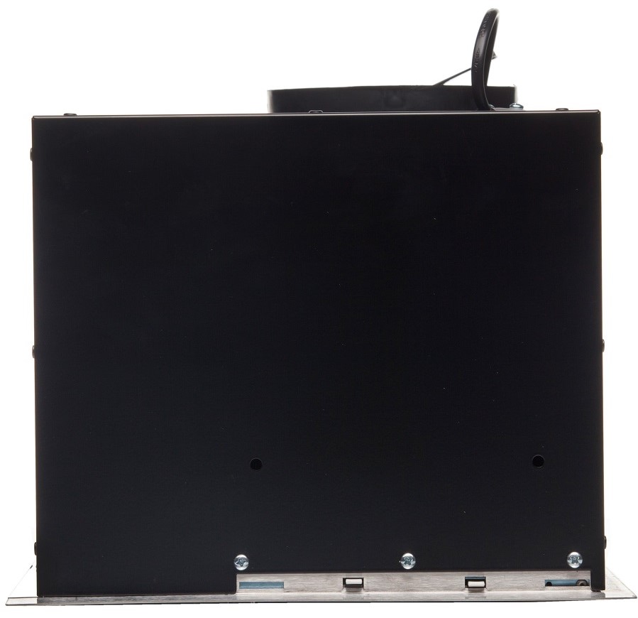 • Фасад вытяжки полностью закрывает нижнюю полку – это позволяет монтировать вытяжку в кухонные шкафчики вместо нижней полки (дна). Удобная система монтажа