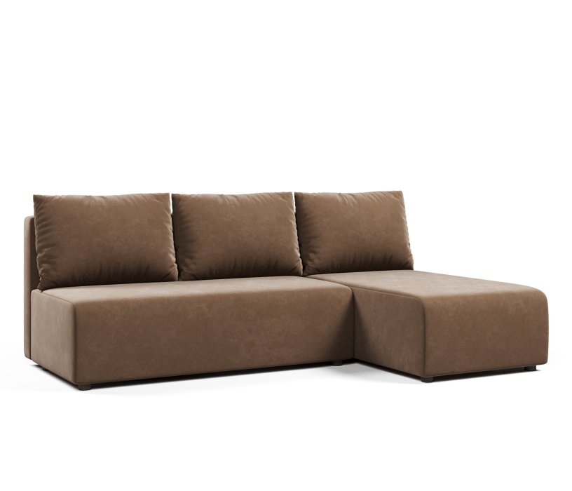 Угловой диван Каир выполнен в минималистичном стиле. Диван подойдет и для маленьких помещений, так как в модели отсутствуют подлокотники, которые сокращают пространство вокруг.