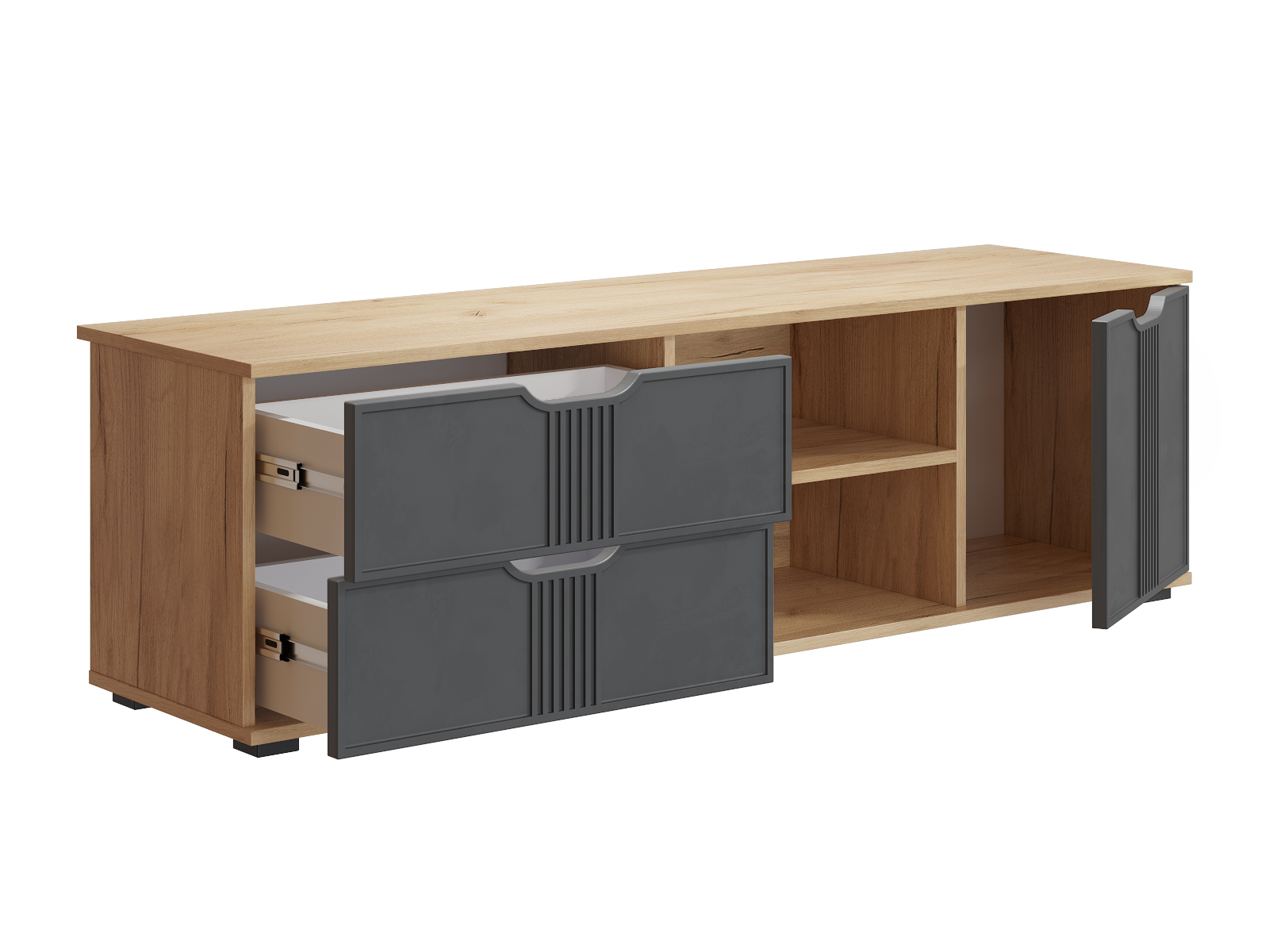 Тумба для ТВ Эмилия ЭЛ-40 подойдет для гостиной квартиры или загородного дома. Столешница изготовлена из ЛДСП толщиной 16 мм. Дно ящиков двп 3 мм. В ящиках используются телескопические направляющие полного выдвижения без доводчиков. Высота опоры 20 мм. Фурнитура: петли с доводчиками.