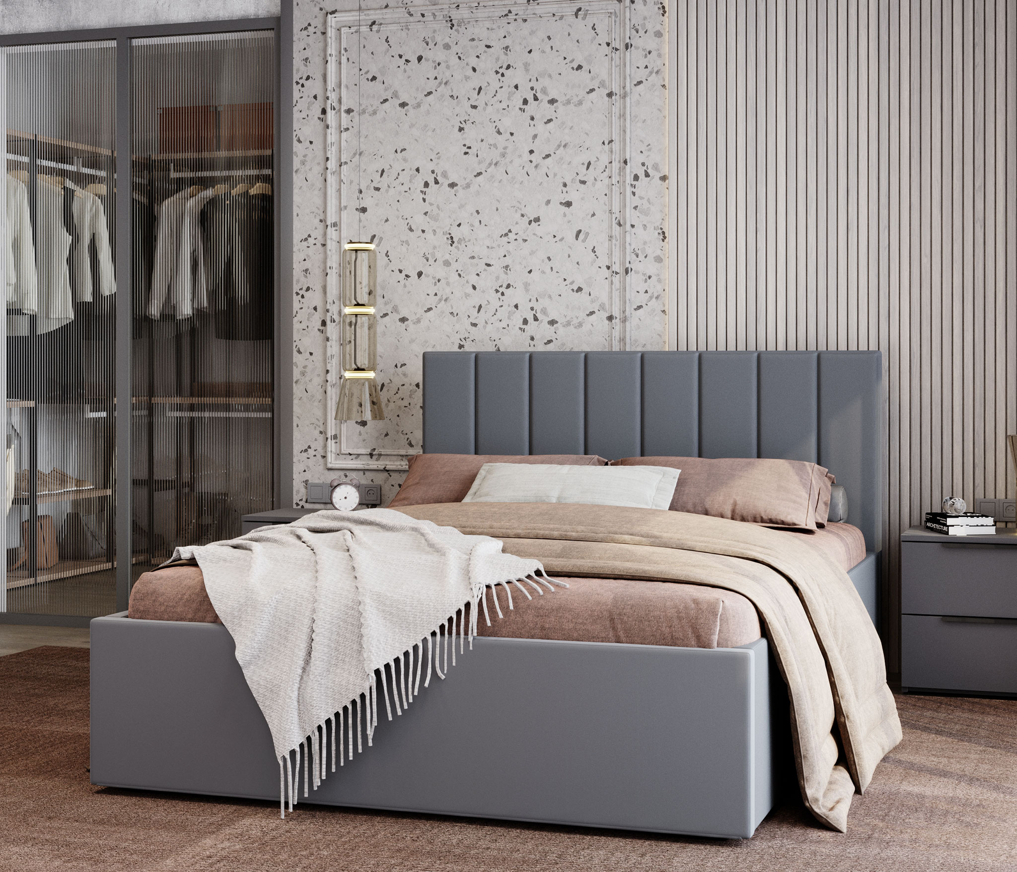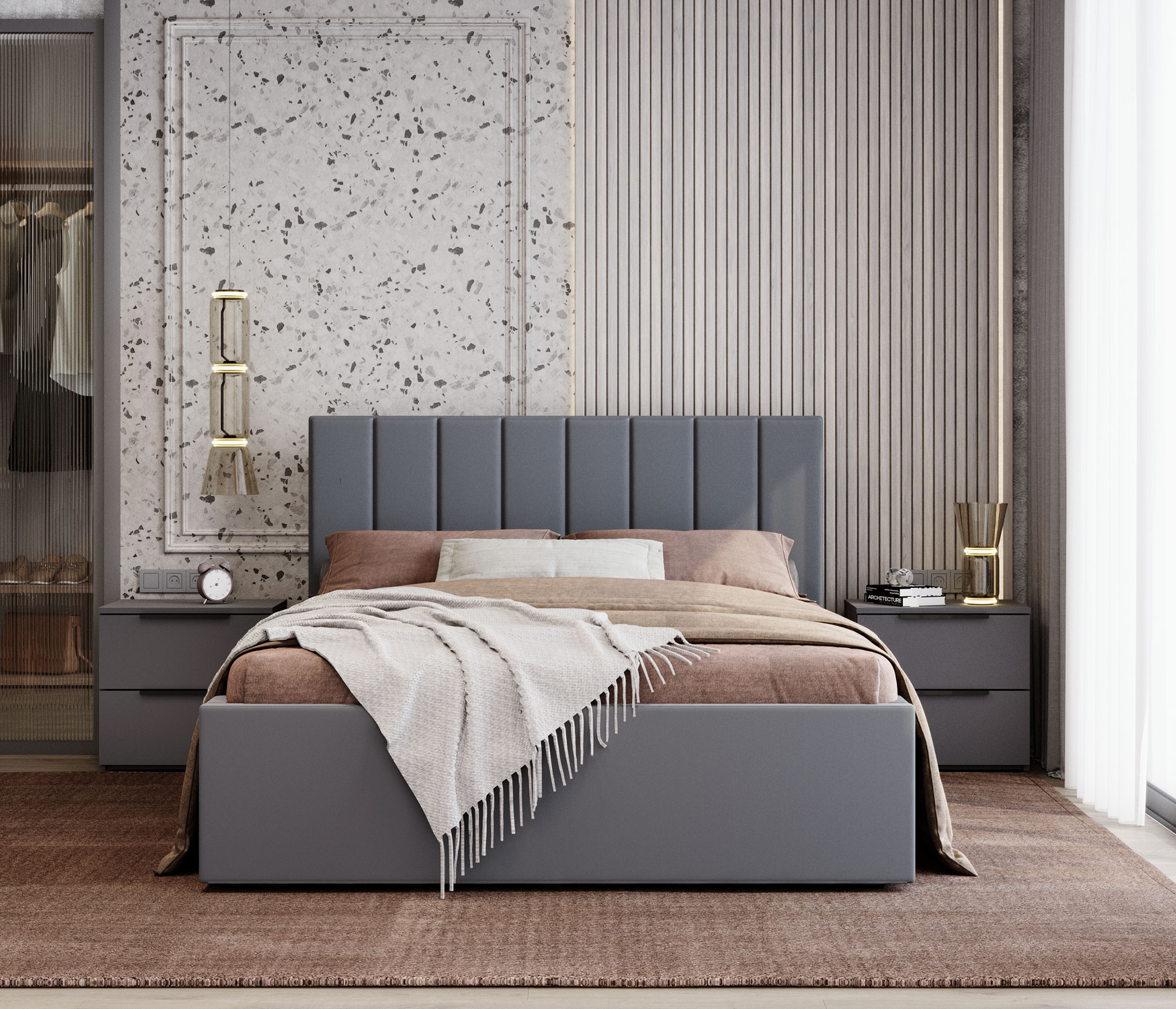 Кровать Аврора (160 х 200) с ПМ (Серый)