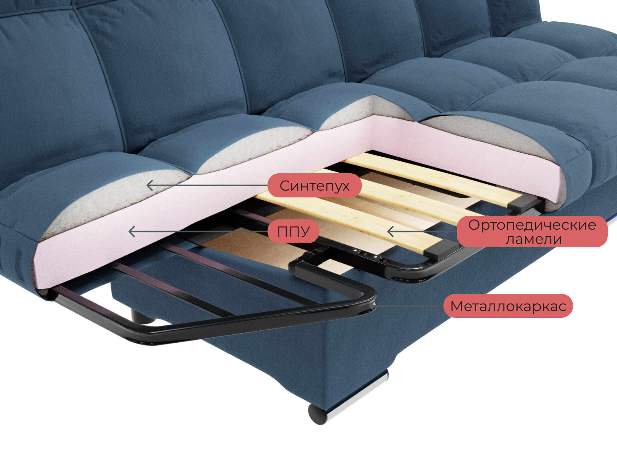 Современный и удобный диван-кровать с тремя возможными положениями вместо двух. Он отлично подойдет для современного интерьера и станет прекрасным местом для размещения гостей или друзей. В собранном виде может служить как место для отдыха или сна, а в полностью расправленном – как полноценное спальное место.