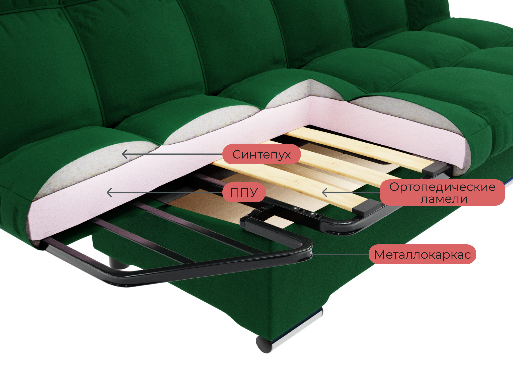 Отзывы о Столплит Прямой диван Клик-Кляк,велюр Зеленый