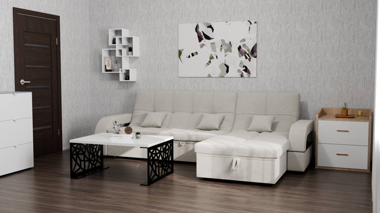Модульный диван "Майами-2" от YORCOM - это отличный выбор для тех, кто ищет комфортабельный и стильный диван для своего дома. Этот диван выполнен из велюра белого цвета, который придает ему элегантный и современный вид.
